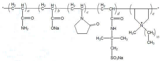 In order to improve the properties of HPAM, much research has been undertaken on changing the chemical structure of HPAM in the process of polymer flooding [24,25,26,27,28]. Researchers have mainly focused on replacing various AM moieties in the main chain. The properties of the copolymers can be optimized by adding different functional groups to HPAM to obtain better stability. Polymers containing sulfonate groups are expected to offer higher stability in solution and are tolerant to high salinity [29].