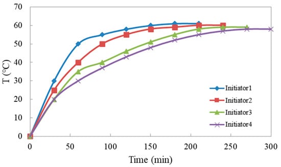Figure 7 shows the rise in temperature during the polymerization of different initiators.