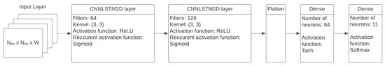 The neural network was developed using TensorFlow with the implemented CNNLSTM2D layer using the algorithm described in [21].