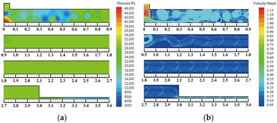 Flow characteristics and fluctuating pressure of ATB (a) pressure contours, (b) velocity contours [15].