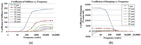 The effects of gap height and perturbation frequency on the dynamic performance of the compensated flat pad aerostatic bearing: (a) dynamic stiffness, (b) damping coefficients [39].