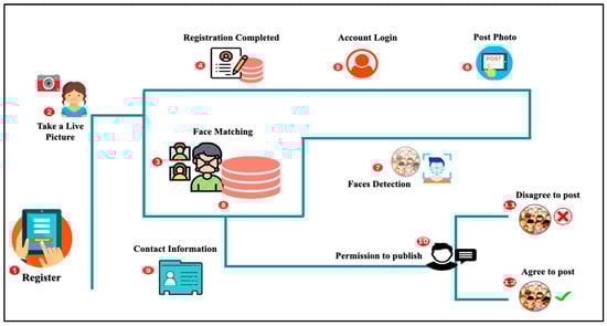 - The proposal is conceived with a proactive mechanism that allows everyone in an image to be conscious of the publication Figure A2a.