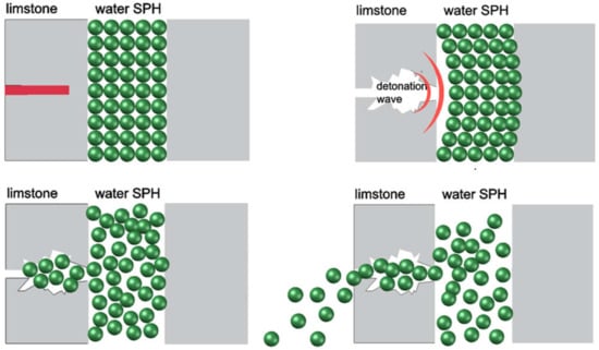 - Gharehdash, S.; Barzegar, M.; Palymskiy, I.B. Blast induced fracture modelling using smoothed particle hydrodynamics. Int. J. Impact Eng. 2020, 135, 103235. [Google Scholar] [CrossRef]