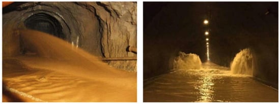 - Yang, W.; Fang, Z.; Wang, H. Analysis on water inrush process of tunnel with large buried depth and high water pressure. Processes 2019, 7, 134. [Google Scholar] [CrossRef]