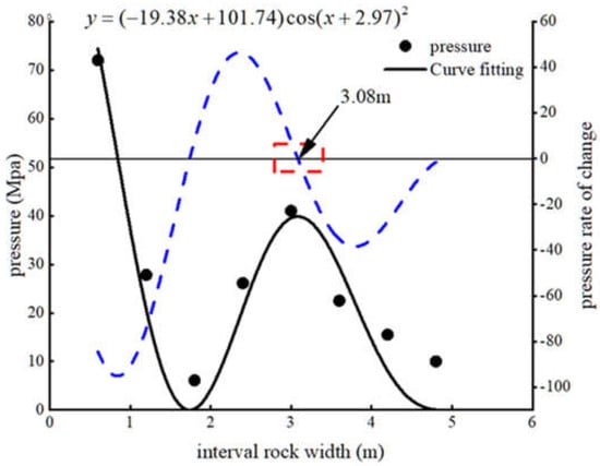 After using the derivative of the fitted curve to obtain the derivative change trend curve of the stress peak curve and finding the zero point of the stress peak derivative curve to obtain x = 3.08 m, that is, when the thickness of the rock wall is 3.08 m, the unit stress peak reached the maximum. At this time, the risk of water inrush caused by blasting is the greatest, and the thickness of the rock wall should be at least greater than this thickness during construction.