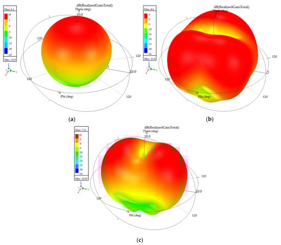 | computed maximum realized gains at the resonance frequencies (dB) | 6.1 4.6 7.21 | 5.9 3.5 6.6 | 5.6 2.8 6.5 |