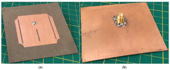 - Haneishi, M.; Yoshida, S. A design method of circularly polarized rectangular microstrip antenna by one-point feed. Electron. Comm. Jpn. Part I 1981, 64, 46–54. [Google Scholar] [CrossRef]