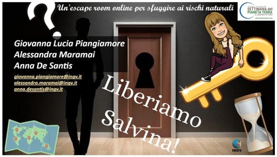 Our multi-hazard hypernarrative Escape Room, named Let’s free Salvina!, an online Escape Room to elude natural risks, was created using Genially, a free online learning platform that offers multiple tools to make the classroom fun, interactive, and engaging. It has been enthusiastically played simultaneously by almost a thousand students all over Italy.