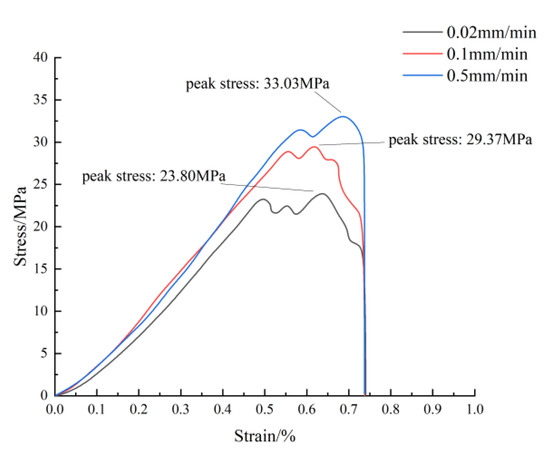- With the increase in loading rate, the time for the growth of cracks inside the sandstone is no longer enough; thus, the peak strength and elastic modulus of the rock under uniaxial compression will gradually increase.