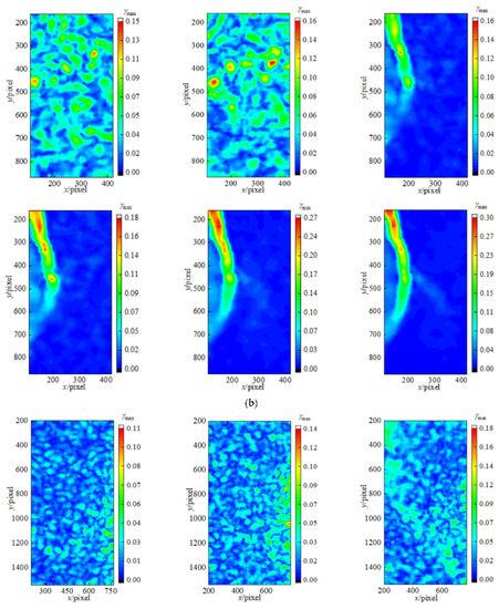 3.2. Strain Field Evolution of Sandstone with Different Grain Sizes