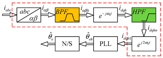 It can be seen from the above equations that the rotor position information is contained in the current negative sequence component. To extract the rotor position information, the signal is processed according to the flow shown in Figure 2.