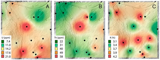 | U (ppm) | Th (ppm) | K (%) | U (ppm) | Th (ppm) | K (%) | U (ppm) | Th (ppm) | K (%) | |