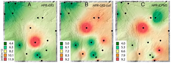 - The RHP values obtained from the geochemical and GRS data were very similar and high at almost all of the sampling points. This indicates that GRS is a fast, inexpensive, and accurate tool for the study of RHP in rocks using data taken from the surface. There was some overestimation; hence, further studies are required, with the aim of establishing some safety criteria, but these results are promising from the perspective of GRS as an exploration tool for delineating the more interesting target areas.