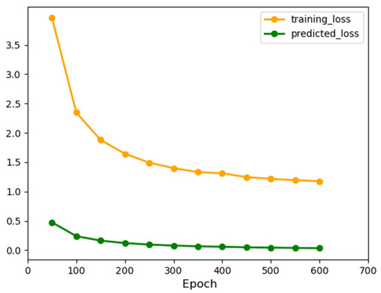Inspired by [44], we use a standard training set to compare the proposed method with various deep models. This training set contains 810 images, of which 540 images (180 images per defect type) are randomly picked from the original dataset and 270 noise images (90 images per defect type) are obtained by using the disturbing method of salt and pepper noise (ρ = 10%). Similar to [44], in the training process, each image is resized to 256 × 256 and randomly cropped to 224 × 224, and then normalized by . The parameters of the encoder network are initialized through initialization strategy [45] instead of using a pretrained ResNet-34 [29]. The batch size was set to be 8, and the number of training steps was 50K due to the fact that the loss converges after 50K iterations without adopting a validation set, as shown in Figure 6. We use the RMSprop optimizer [46] as the optimizer with a learning rate equal to 0.001 and an alpha equal to 0.9. During the test, we first adjust the image to 256 × 256 and then input it into the network to obtain its saliency map. To keep the resolution of the input and output images consistent, bilinear interpolation is used to restore the saliency map.