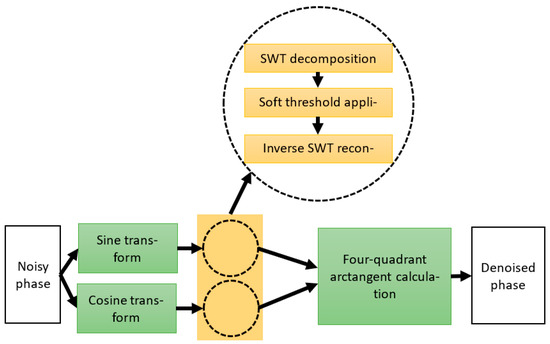 Before unwrapping the interferogram, the image obtained with pre-processing technique had to be denoised. A simple and fast method coupled is sequentially applied: “fast denoising method based on the sine–cosine transform (SCT) and stationary wavelet transform (SWT) [15].
