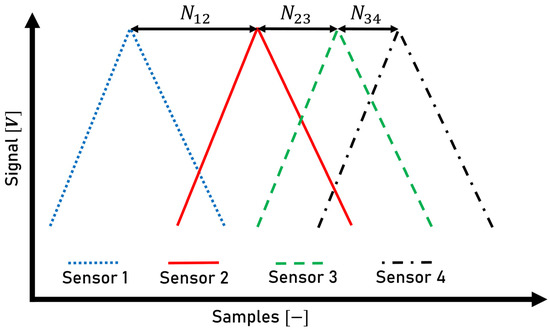 where represents the phase shift in the form of a number of data points. The shift between the sensor signals is shown in Figure 2.