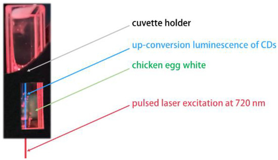 UCL of CDs in chicken egg white (lower half of the image) upon excitation at a wavelength of 720 nm.
