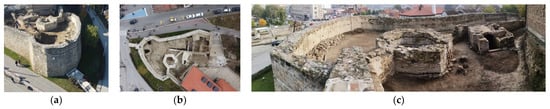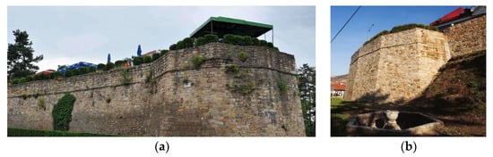 The paper analyzed articles that dealt with the history of the creation of the old city fortress, through the identification of objects within its borders [,,,,,,]. The results of archaeological works were used, including documentation and pictures from the locality, in order to determine the condition of the objects that are the subject of research, as well as possible interventions for the purpose of restoration and conservation [,,,,,]. Studies dealing with new digital techniques of preserving cultural heritage, using different technologies for recording relevant architectural objects are being researched, through the goals of UNESCO [], ICOMOS [], and similar institutions, charters, and guidelines relevant to the topic [,,,,,,,,,,,,].