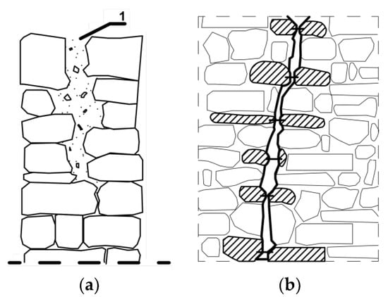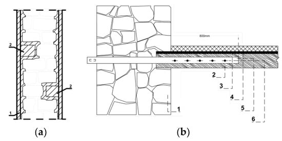 Based on studies conducted after earthquakes, both globally and locally, technical measures and materials are proposed for strengthening and improvement of the seismic resistance of the old walls of the fortress (injection, application of composites, reinforcements, etc.) [,,,,,,,,,]. In recent years, state-of-the-art techniques have been developed consisting of the use of fiber-reinforced polymers (FRP) as well as fabric-reinforced cementitious matrices (FRCM) [,].