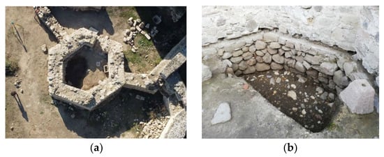 Archeological site of Tower Dzephana. (a) Aerial view. (b) Detail of the foundation (Photo source: private archive of Vladan Vidosavljević).