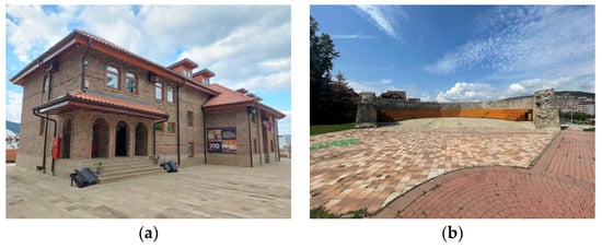 Keeping these buildings with vernacular architecture from disappearing is not only related to design values, but also to cultural and spiritual values. In the face of the onslaught of modern construction techniques and architectural styles brought by educated builders, buildings need to be renovated and strengthened so that they remain authentic, which is often very difficult to achieve. On the other hand, these objects should be “trained” for new functions, for modern demands of society, which includes their valorization. As clear as the concept of protection of cultural assets is, the concept of valorization is broad and does not always have the same meaning for everyone. Valorization of cultural heritage includes its (re)activation. The term valorization includes a series of activities and strategies, each of which can be viewed from a different perspective and with differently set goals. In our country, the concept of valorization of cultural heritage is most often linked to economic valorization through integration into the tourism product. More simplified, the goal is to bring as many tourists as possible and most often to achieve direct or indirect economic profit. The area of the fortress can be used for organized meetings and exchange of ideas of young creative people (faculties, schools are in the immediate vicinity), a space for socializing, learning, thinking, entertainment, for creating, and finally, presenting what has been achieved. Potentially, it can also be a space for spectacles, for a public purpose accessible to all. The buildings inside the fortress should be kept at the level of preserved and partially restored parts, using modern methods in their presentation. In this way, the former appearance of the fortress would be preserved, and the complex would be revitalized and opened for tourist visits. The space, certainly in a positive way is completed today by the building of the city library “Dositej Obradović”, (Figure 26a) instead of the former cinema “Crvena zvezda” (adapted with the financial assistance of the Ministry of Culture of the Republic of Serbia, since 1996, permanently owned by the city). A stage for various events was recently built on the area of the western Tabia (Figure 26b). Around the stage, there is a space for visitors with fixed seating, with the possibility of expanding it for larger events such as the “Old Town” music festival, “World Music Fest Zeman”, “Amateur talents school festival”, and others.