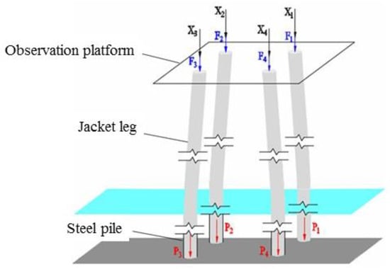 Under normal sea conditions, the jacket structure can be regarded as a linear system, as shown in Figure 2. In this paper, the load change at the top of the jacket leg is denoted by and the load transfer function of the platform structure is , the change in the pile foundation load can be expressed as