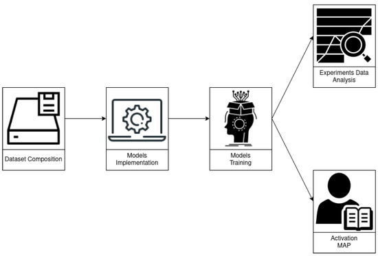 One of the most widely used deep learning models for image classification is the Convolutional Neural Network (CNN), which exploits mathematical convolutional operators on the input image to extract features. The input images pass through several layers of convolution, to combine the pixels with the neighboring ones, and subsampling, to reduce the size of the two-dimensional matrix while preserving the most relevant information. Finally, the last part of the CNN is usually composed of dense layers, which are formed by a variable number of perceptrons); this last part of the model performs the classification, and it is trainable with the standard backpropagation algorithm. We refer to the literature for further information on CNNs [30,31].