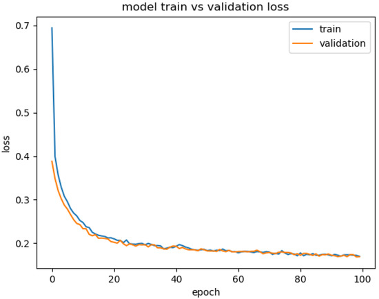 Figure 6 shows the loss rate obtained by using the network training iteration 100 times. It can be seen that the loss rate of the training set and the loss rate of the test set are both in a downward trend. The loss rate of the training set is 0.170, and the loss rate of the test set is 0.169, indicating that the network is moderately fitted.