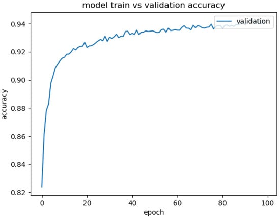 In Table 4, Model A and Model B establish a pair of convolution layer and pooling layer and two pairs of convolution layer and pooling layer, respectively. Set the same size of the convolution kernel and pooling kernel, and the step size and channel size are 32. Model C has the same number of network layers as Model B, and the channel size is set to 64 for comparison. The data set is used to verify the three models, and the model is evaluated by the prediction accuracy rate (Equation (14)) and the loss rate (Equation (15)). The accuracy rate reflects the ability of the model to judge the overall sample correctly. The categorical_crossentropy loss rate is used to train the model through the loss value of each iteration.