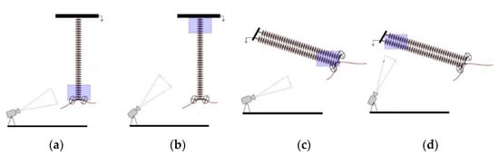 Figure 1. The recording technique: (a) initial position for suspension string; (b) final position for suspension string; (c) initial position for tension string; (d) final position for tension string.