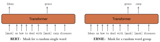 30]. On the other hand, ERNIE masks the whole phrase, which can well capture the relationship between words.