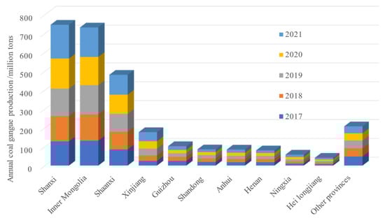 The annual coal gangue production in different provinces of China from 2017 to 2021.