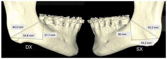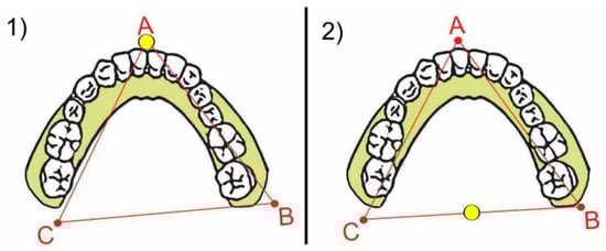 15]. Above all, planning the angular region of the face turns out to be very important to obtain a final harmony of the face that is completely satisfactory for the patient, and it must be conducted with appropriate methods. To understand the movements that the mandible will undergo during surgery, we can imagine the dentition of the lower arch as a triangle defined by three points A, B, and C (