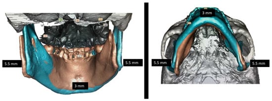 19]. The osteotomy sections are then simulated on the virtual 3D reconstruction and bone pieces are repositioned according to the established treatment plan. In the CT reconstruction, the best possible repositioning of both the chin symmetry and the symmetry of the mandibular angle regions is directly evident and/or may be related to 3D cephalometric planes.