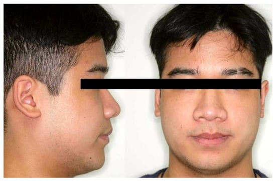 For this reason, it was very important for the surgeon to plan the correction of the facial skeleton, taking into account both the sagittal and asymmetric components. The dental occlusion was compatible with a “surgery early” approach, so the patient underwent extraction of the lower third molars and a short orthodontic treatment (six months) to correct some dental contacts that would have disturbed postoperative stability, and then operated.
