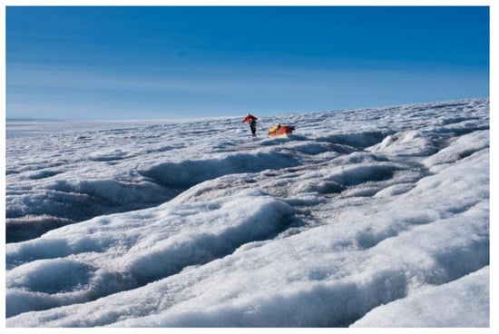 One of the first was certainly the expedition of Fridtjof Nansen (1888–1889), who was the first to cross the southern part of Greenland on skis [2]. He brought back a wealth of scientific information and meteorological measurements and proved that the entire Greenland interior was covered by an ice sheet. Another important expedition was undertaken by the Swiss Alfred de Quervain in 1912. De Quervain, a meteorologist, crossed Greenland with three other expedition members considerably further north than Nansen [3]. He was shortly followed by Alfred Wegener and Lauge Koch [4,5].