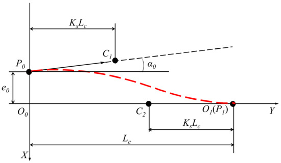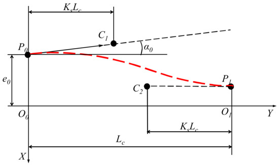 The start and end coordinates are P0(e0,0) and P1(0,Lc), respectively. The distance between the control point C1 and the starting point P0, and the distance from control point C2 to endpoint O1 are KsLc. The coordinate of the control point is (C1 (K = Lc,e0 + KsLctanα0), C2 (Lc − KsLc,0)).