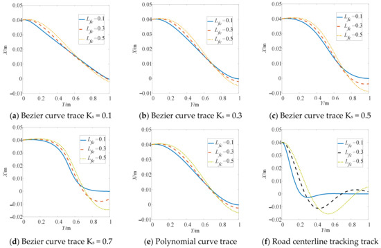 As can be seen from Figure 12, for target paths such as a Bezier curve, cubic polynomial or road centerline, with the increase in preview distance the curvature of each point on the tracking track curve becomes smaller and the tracking becomes smoother.