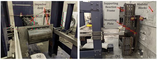 Testing System: (a) Impact components—alternate view, (b) Reaction components—clamping assemblies not installed.