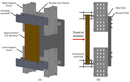 Supporting reaction frame design: (a) perspective view, (b) side view.