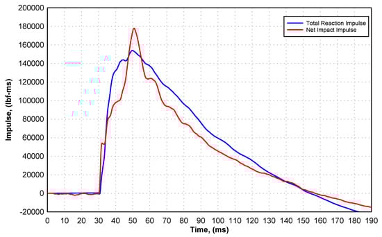 Impact and reaction impulses are calculated by taking the integral of each respective force history (Equation (4)).