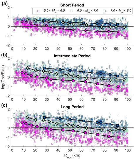 Iervolino and Cornell [65] demonstrated that selection based on magnitude and distance is not justified. For this purpose, Iervolino and Cornell [65] analyzed two classes of records for a target site (Mw = 7.0 and R = 20 km). One class of records is chosen based on magnitude and epicentral distance, while another class of records is chosen arbitrarily from an earthquake catalogue, but scaled. Generally, scaling is performed so that spectral values at natural periods of structures are closer to UHS at those periods. These records were subjected to different SDOF and MDOF structural systems with different natural periods and configurations, hysteresis relationship and material of construction (reinforced concrete and steel). In terms of building response from these two sets, no significant difference was detected to justify a careful selection of records. In addition, Bazzurro and Cornell [66,67] demonstrated that displacements of nonlinear structural elements are independent of epicentral distance. Nevertheless, magnitude and distance are still used in practice for initial selection of records, at least when they are readily available.