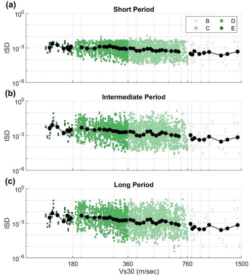 - Derras, B.; Bard, P.Y.; Cotton, F. Site-conditions proxies, ground-motion variability and data-driven GMPEs: Insights from NGA-West 2 and RESORCE data sets. Earthq. Spectra 2016, 32, 2027–2056. [Google Scholar] [CrossRef]