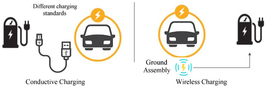 Wireless charging can be classified into various charging standards such as Qi, SAE, A4WP, and IEC charging, and can be operated with different power supplied and charging times based on the different coupling techniques. The coupling techniques are as follows [98,99]: