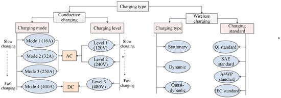 - We present a taxonomy of charging levels, charging modes, charging standards, and charging technologies based on the charging types, i.e., conductive and wireless charging.