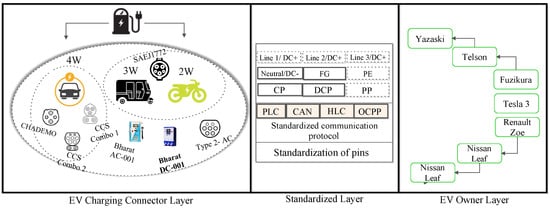 Therefore, we considered different types of EV charging infrastructures based on the requirement of users or their traveling habits. However, the standardization of EVs community charging infrastructure will help to overcome the issues of public and private charging infrastructure. This means that EVs manufactured by different companies with different specifications and charging standards can opt for charging. However, it is not possible to make available all types of charging types at a charging station. Therefore, we considered the critical issue of standardization of EVs community charging infrastructure in the proposed survey.