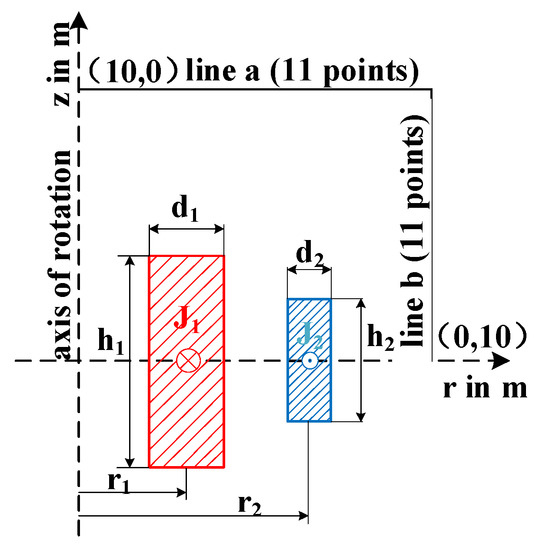 A superconducting magnetic energy storage system (SMES) was optimized to obtain the required storage energy with minimal stray fields. The configuration of the device [22] is shown in Figure 8; two concentric coils, carrying currents in opposite directions and operating under superconducting conditions, provide the conditions to store large amounts of magnetic energy in their magnetic fields while keeping the stray field within certain limits.