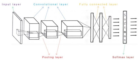 The convolutional neural network based on artificial neural network is a deep neural network with convolutional structure [14], which acts as a neural structure for multilayer supervised learning, uses gradient descent to minimize the loss function, and adjusts the weight parameters in the network in reverse layer by layer to improve the accuracy of the network. Convolutional neural network can better adapt to the feature structure of the image, which helps feature extraction and classification. The sharing of weights can reduce the training parameters of the network and make the neural network structure simple and applicable. As shown in Figure 2, the convolutional neural network mainly consists of an input layer, a convolutional layer, a pooling layer, a fully connected layer, and a Softmax layer [15].