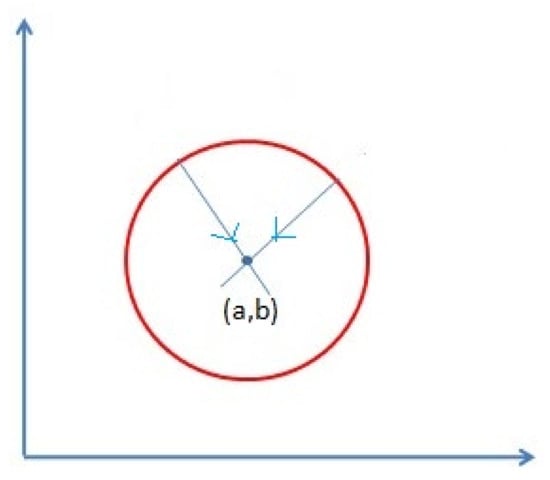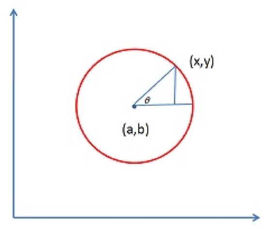 As shown in Figure 11, a particular circle in the Cartesian coordinate system is uniquely determined by three parameters (x-coordinate, y-coordinate, and radius r of the circle). To detect a circle, the circle is transformed from the Cartesian coordinate system to the Hough space, i.e., a circle in the Cartesian coordinate system is transformed into a point in the Hough space, and a point of a circle in the Cartesian coordinate system is transformed into a cone in the Hough space. When using the Hough circle detection theory, the Canny edge detection is first performed on the original image to obtain the binary map, and then the Sobel operator is executed so that the domain gradient values of all pixels are calculated, and finally the circle center and radius of the circle in the image are estimated [22].