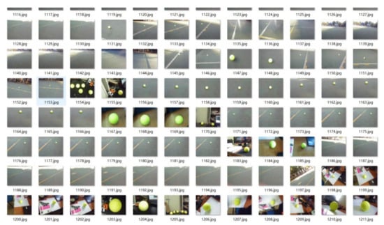 Some of the tennis ball image samples collected by the author are shown in Figure 9. Considering the characteristics of deep learning, only one tennis ball is included in each image, which is to highlight the main features of the tennis ball and to avoid the computer recognizing several tennis balls as a whole, which is beneficial for the robot to distinguish multiple tennis balls in the ingested image recognition [20].